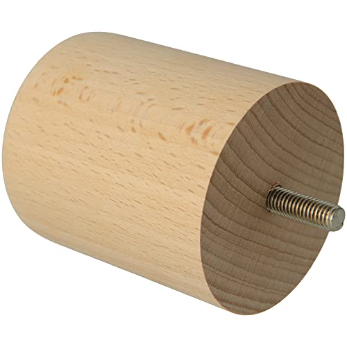 Amig - Pied Rond pour Meuble, Pied en Bois de Hêtre avec Finition Naturelle, Pieds de Rechange pour Canapés, Lits, Tables, Fixation : Tige Métallique M8, Dimensions : 68 x 80 mm