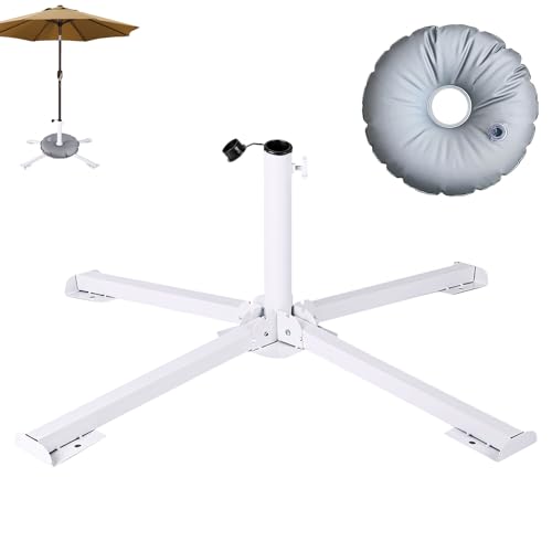 Recitem Pied de parasol en fonte - Support en croix - Pour balcon, terrasse, jardin, camping sur la plage - Sac à eau - Matériau PVC résistant aux intempéries (A)