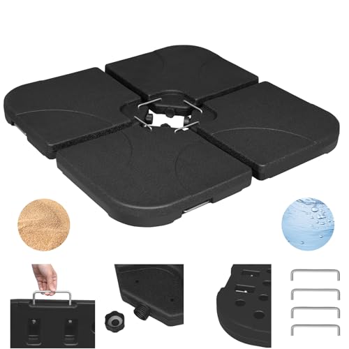 WOLTU Pied de Parasol 4 Pièces, Poids pour Parasol Croix de Sol, 60 L/80 kg, à Remplir d'eau ou de Sable, avec Connecteurs Métalliques, en Plastique, Carré, Noir