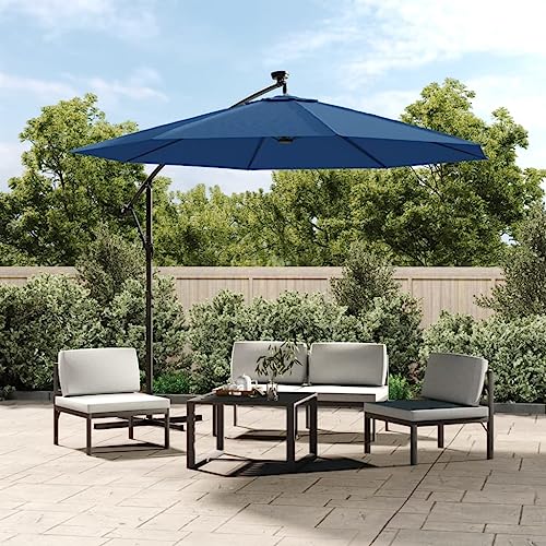 RELAX4LIFE Parasol Déporté Solaire Φ300 cm avec LED et Manivelle, Incliné 35°, Pied en Croix, Parasol de Jardin Extérieur pour Cour Plage Bord de Piscine (Bleu foncé)
