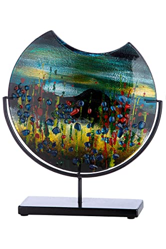 GILDE GLAS art Vase Rond décoratif sur Pied en métal Noir - Peint à la Main avec éléments en Verre - Objet d'art Multicolore Hauteur 37 cm