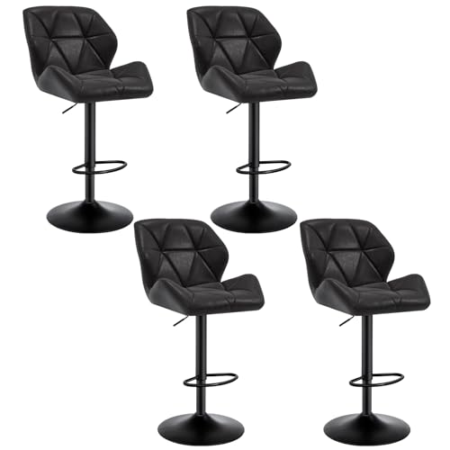 WOLTU Lot de 4 Tabouret de Bar réglable en Hauteur Chaise Haute pour Bar avec Dossier siège rembouré en Similicuir Pied en métal,Noir BH287sz-4