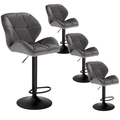WOLTU Lot de 4 Tabouret de Bar réglable en Hauteur Chaise Haute pour Bar avec Dossier siège rembouré en Velours Pied en métal, Gris Foncé BH139dgr-4