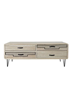 Meuble TV en bois Paulownia et pied en metal avec 4 tiroirs - Largeur 115 x Hauteur 43 x Profondeur 61 cm --