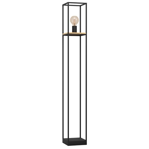 Eglo Lampadaire sur pied Libertad, luminaire en métal noir et bois naturel, lampe de salon avec interrupteur à pied, douille E27