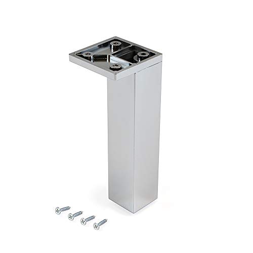 Emuca - Pieds pour meubles, pied de meuble en plastique, Lot de pieds avec vis de montage, plusieurs modèles (H 140mm d'angle (lot de 4), Chromé)