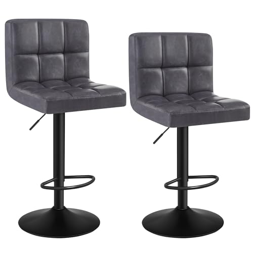 WOLTU Tabourets Bar Lot de 2 Pied Noir en Métal Siège en Similicuir rembourrée,Anthracite BH112an-2