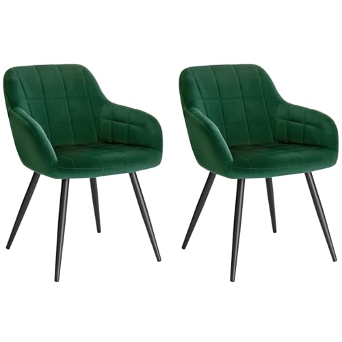 WOLTU Lot de 2 Chaise de Salle à Manger, Chaise de Cuisine rembourrée en Velours, Pied en métal,Vert Foncé.
