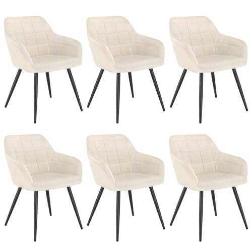 WOLTU Lot de 6 Chaise de Salle à Manger, Chaise de Cuisine rembourrée en Velours, Pied en métal,Crème Blanc.