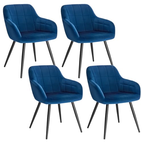 WOLTU Lot de 4 Chaise de Salle à Manger, Chaise de Cuisine rembourrée en Velours, Pied en métal,Bleu.