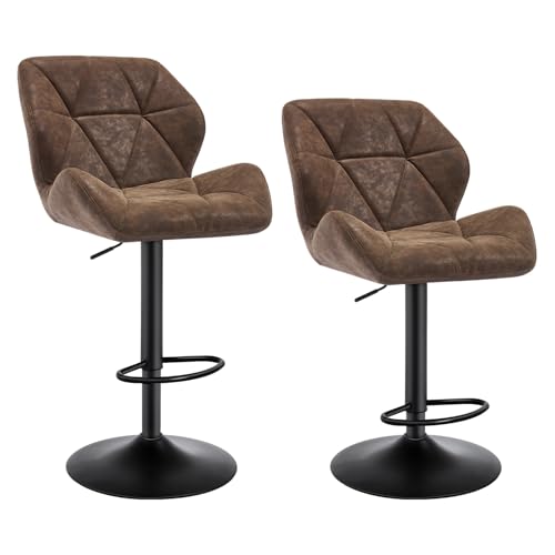WOLTU Lot de 2 Tabourets de Bar Réglables en Hauteur, Chaises Hautes pour Bar avec Dossier, Siège Rembouré en Similicuir Pied en Métal, Brun Foncé