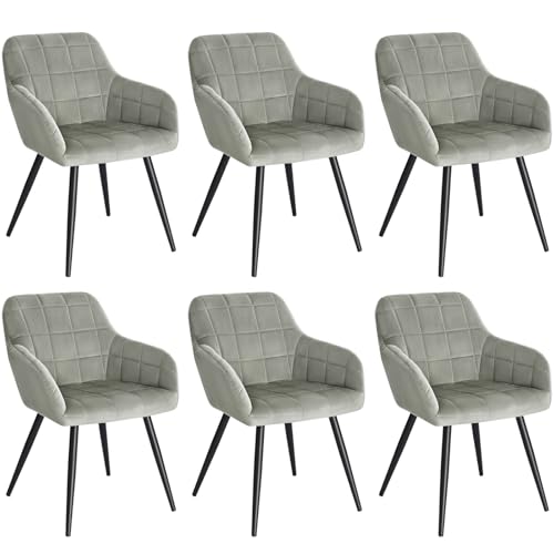 WOLTU Lot de 6 Chaise de Salle à Manger, Chaise de Cuisine rembourrée en Velours, Pied en métal,Gris.