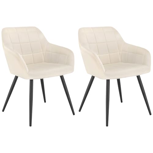 WOLTU Lot de 2 Chaise de Salle à Manger, Chaise de Cuisine rembourrée en Velours, Pied en métal,Crème Blanc.
