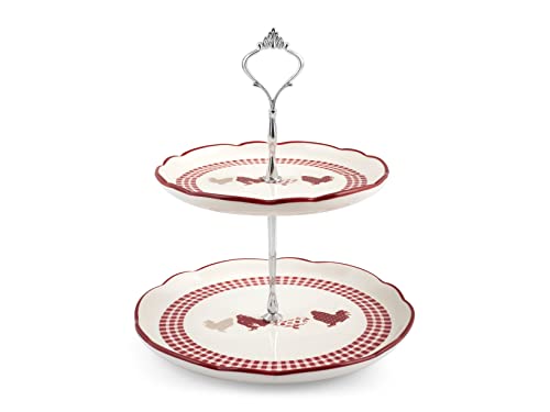 HOME Country Assiette sur Pied, 2 Etages, Métal, Rouge/Ivoire