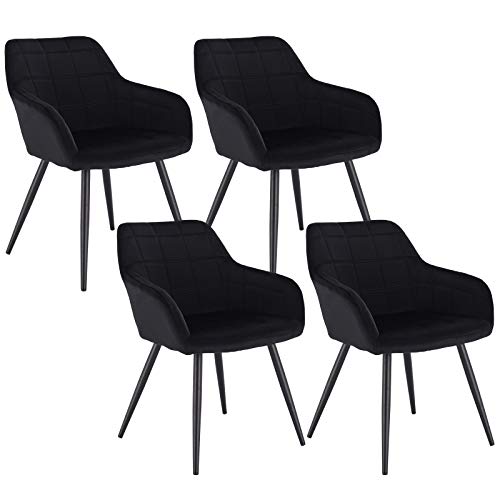 WOLTU Lot de 4 Chaise de Salle à Manger, Chaise de Cuisine rembourrée en Velours, Pied en métal,Noir.
