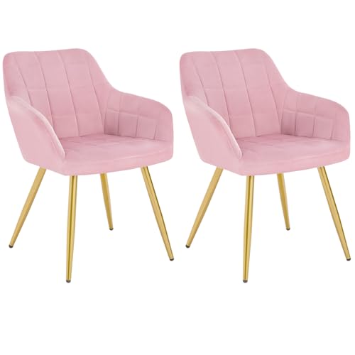 WOLTU Lot de 2 Chaise de Salle à Manger, Chaise de Cuisine rembourrée en Velours,Or Pied en métal,Rose.