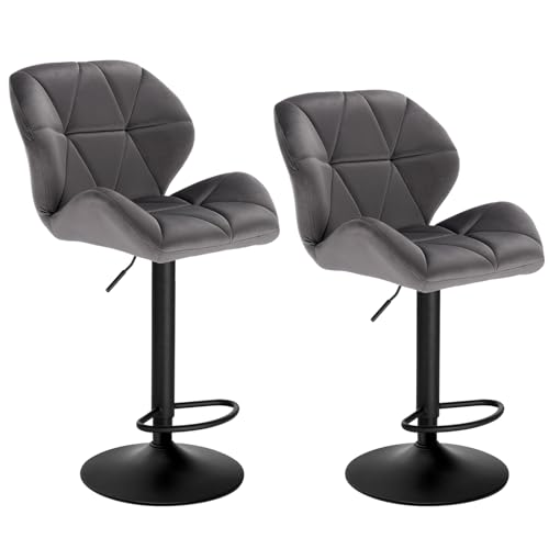WOLTU Lot de 2 Tabourets de Bar Réglables en Hauteur, Chaises Hautes pour Bar avec Dossier, Siège Rembouré en Velours et Pied en Métal, Gris Foncé