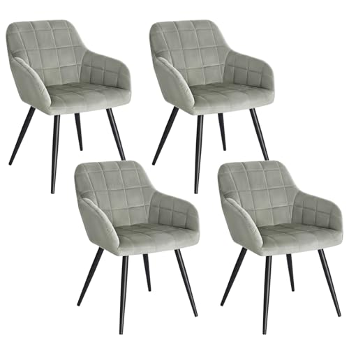 WOLTU Lot de 4 Chaise de Salle à Manger, Chaise de Cuisine rembourrée en Velours, Pied en métal,Gris.