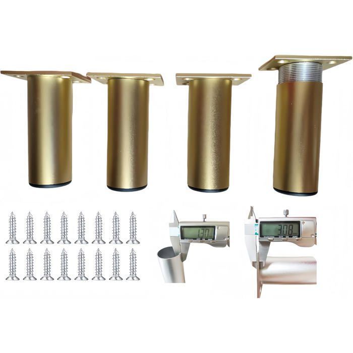 FZQSXAZU Pieds de Table réglables 6-40 cm, Pied Doré Meuble pour Cuisine, canapé et Armoire, Finition Aluminium anodisé, Base Ø38 mm, Lot de 4 (30 cm), Design Multicolore élégant.