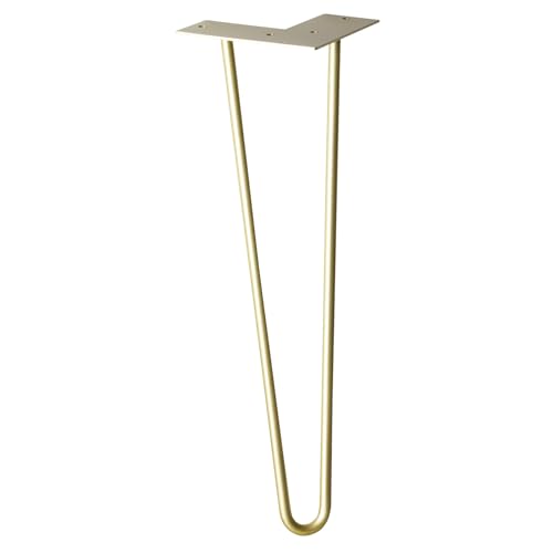 Wagner Pied de Meuble/Pied de Table/Pied en épingle à Cheveux - Hairpin Leg - Style rétro - Acier revêtu doré, 12 x 12 x 20 cm, Pied Conique/incliné, Plaque de Montage intégrée - 12822501
