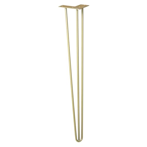 Wagner Design Yourself Pied de Meuble/Pied de Table/Pied en épingle à Cheveux, Hairpin Leg, Style rétro, Acier revêtu doré, 12 x 12 x 71 cm, Pied Conique/incliné, Plaque de Montage intégrée, 12827501