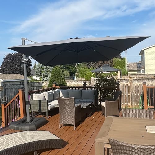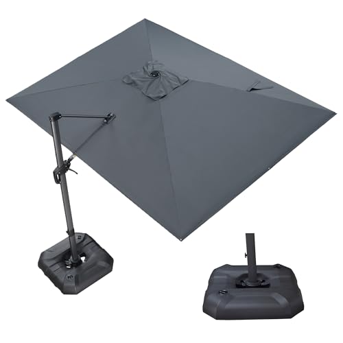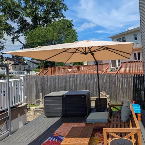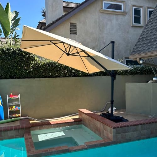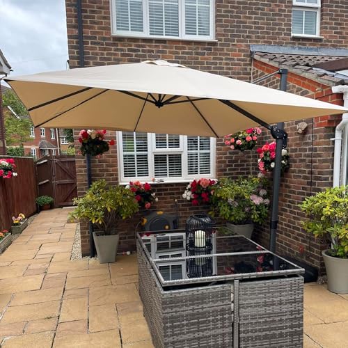 PURPLE LEAF Parasol Déporté 2,7 x 3,65 m Rectangulaire avec Pied, Parasol de Jardin Extérieur à Toit Double Rotatif 360°, Anti-UV, Convient au Patio, Piscines, Cafés et Restaurants, Beige