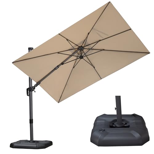PURPLE LEAF Parasol Déporté 3,5 x 2,5 m Inclus Pied en Croix Parasol de Jardin Extérieur en Aluminium Toile 240g/m² Anti-UV avec Inclinable des Deux Côtés Hauteur Réglable et Rotation à 360°, Beige