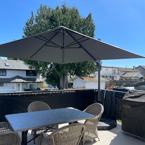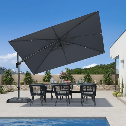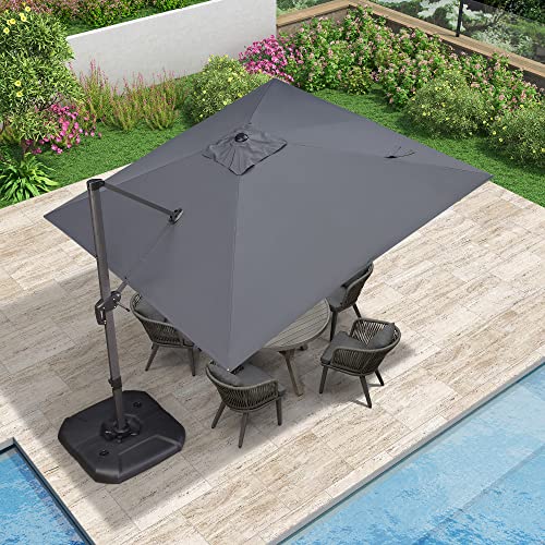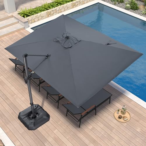 PURPLE LEAF Parasol Déporté 3,3 x 3,3 m Carré avec LED et Pied, Parasol de Jardin Extérieur à Toit Double Rotatif 360°,Protection UV, Pour Terrasses, Piscines, Restaurants Extérieurs, Gris acier