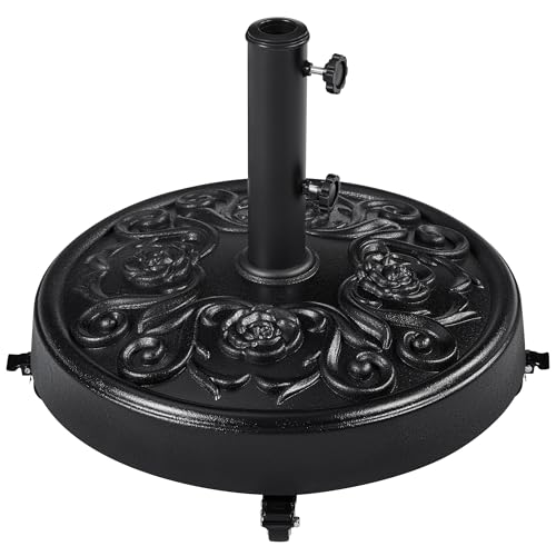 Yaheetech Pied de Parasol à roulettes 25 KG, Base de Parasol Vintage à Motif Rose pour Mât de Ø 34mm/38mm/48mm du Parasol, Support Pied Parasol pour Jardin, Terrasse, Plage (Noir)