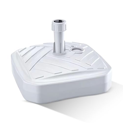 EDA - Pied de Parasol en Plastique Carré 14L - pour Mât Ø 1,8 à 3,2 cm - à Remplir d'eau ou Sable - Blanc