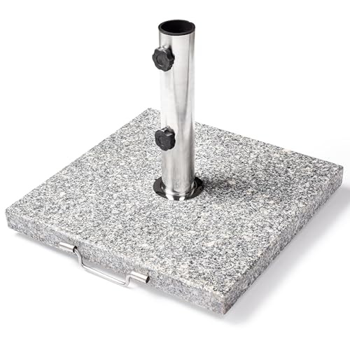 paramondo Pied de parasol en granit, stand de parasol carré, 45 x 45 cm, avec 2 roulettes intégrées, douilles d'adaptation & matériel de montage inclus