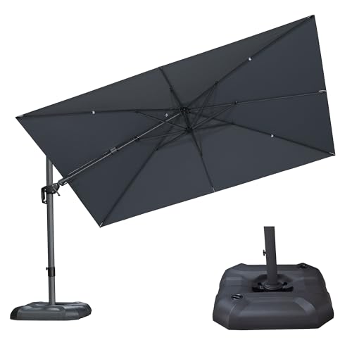 PURPLE LEAF Parasol Déporté Inclinable LED Solaire 3 x 3 m avec Pied, Parasol de Jardin Extérieur Toile Anti-UV Épais avec Inclinaison Bilatérale 50° et Rotation à 360°, Gris