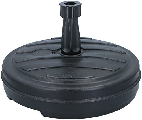 MaxiMondo Pied de Parasol - Plastique - pour Parasol Standard - Remplit d'eau ou de Sable - Diamètre : 45 cm - Rond Noir