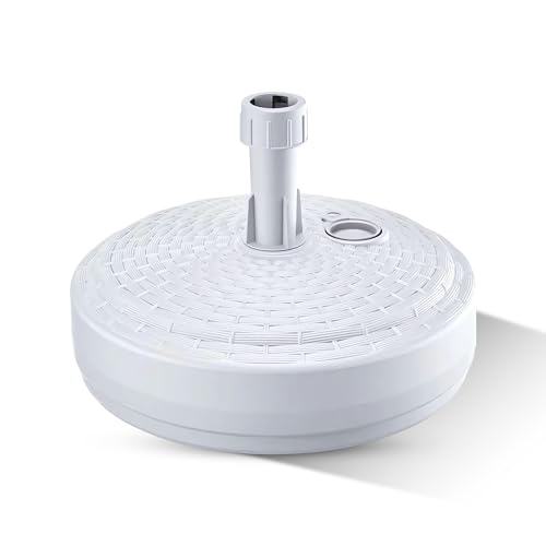 GARDENIX Pied de Parasol Rond, Blanc, Aspect rotin, Plastique, remplissable avec du Sable, de l'eau, des graviers pour Le Jardin, la Plage, la terrasse