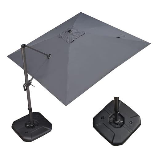 PURPLE LEAF Parasol Déporté Rectangulaire 2,7 x 3,5 m avec Pied, Parasol de Jardin Extérieur Toile 240 gr/m2 Anti UV avec Manivelle, Inclinable et Rotation à 360°, Gris