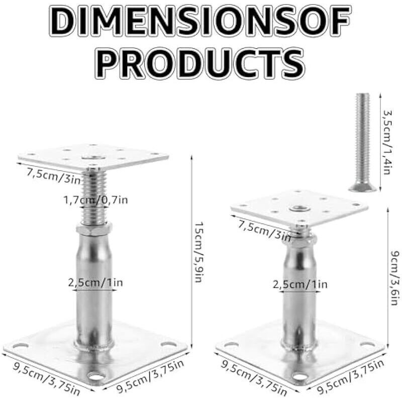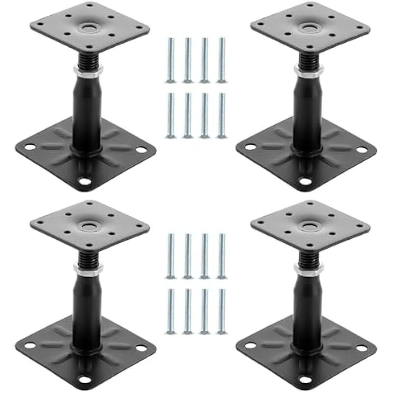 Lot de 4 Supports de Poteau Bois, Galvanisés Réglables en Hauteur 100 à 150 mm, 75 x 95 mm à visser, Pied de Poteau Reglable pour Clôtures, Abris,