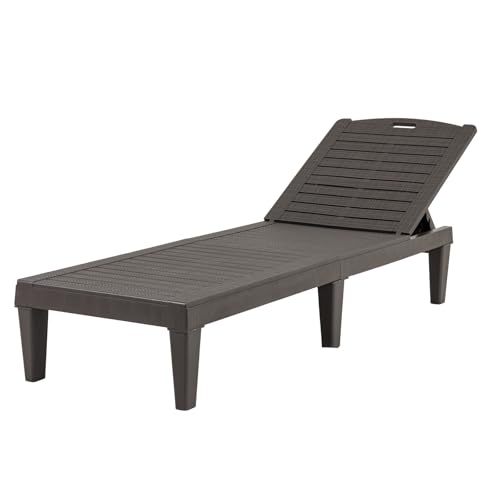 GOPLUS 2PCS Transat Jardin Exterieur, Résistant aux Intempéries avec Dossier Réglable 5 Position, Bain de Soleil avec Sommier à Latte, Poignée et Pied Antidérapant, Idéal pour Jardin, Terrasse (Café)