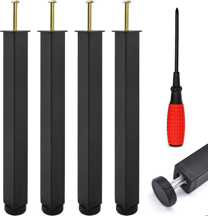 Pied De Lit Pied De Lit Liaison MéTal RéGlables En MéTal Pieds22 à 25 cm-4pcs-Noir-Pour Lattes Sommier MéTalArmoireCanapé