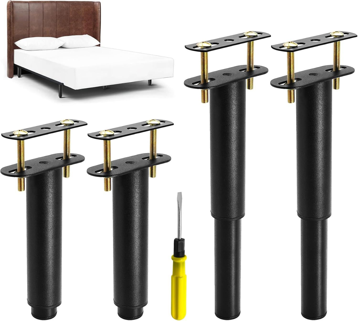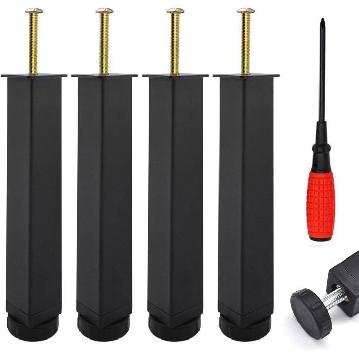 Pied De Lit Liaison MéTal RéGlables En MéTal Pieds20 cm-4pcs-Noir-Pour Lattes Sommier MéTalArmoireCanapé