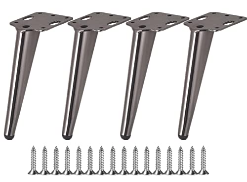 4 Pieds de Meubles Metal Gris Foncé Brillant, Pied Canapé Moderne, Pied de 18cm pour Table Basse, Meuble TV, Armoire Salle de Bain avec Vis+Protection du Sol+Base Silencieuse Antidérapante