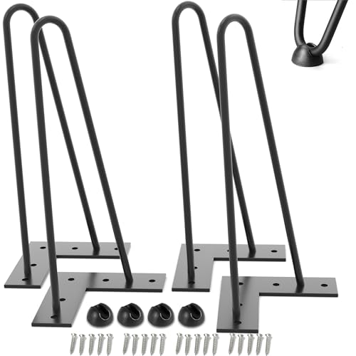 Drenky Pied de Table Metal, Pieds Table Basse 4pcs Pied de Bureau Noir Pied Epingle 40 cm pour Tables Basses, Tables de Salle à Manger, Bureaux Modernes Avec Vis et Protecteurs de Sol en Caoutchouc