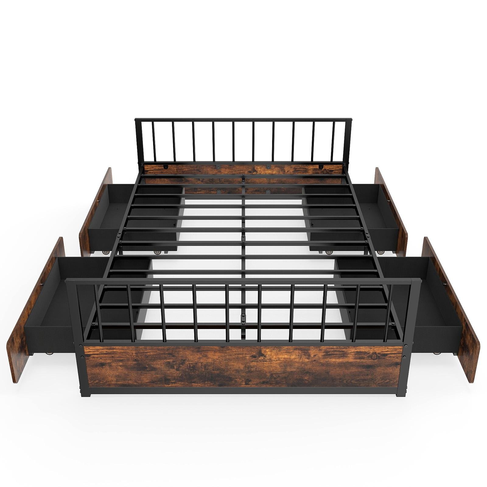 Sommier COSTWAY 140 x 200 cm, lit double avec sommier à lattes, 2 tiroirs, tête et pied de lit, lit pour adolescent, lit en métal, pas besoin de sommier à ressorts