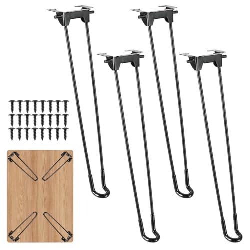 VGECEE 4PCS Pieds de Table en Épingle à Cheveux 46 cm Pieds de Meubles Noirs en Métal Pieds de Table Pliants Pied de Table Rabattable pour Meubles DIY avec 24 Vis - Robuste - pour Table Chaise