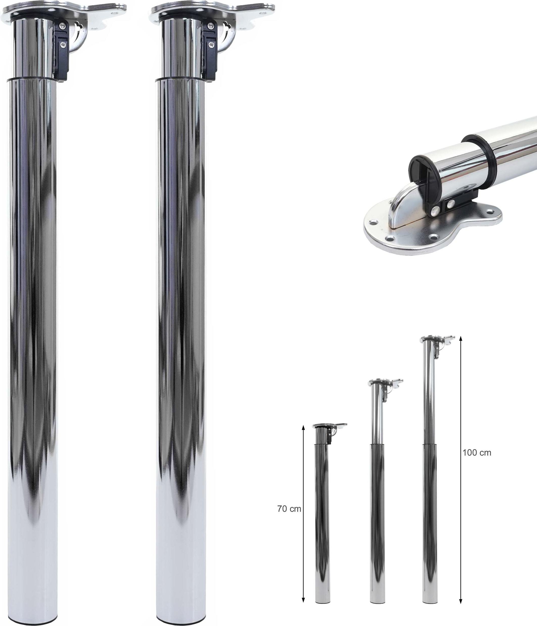 lot de 2 pieds de table HWC-H35 pour bureau pied de table rabattable mécanisme rotatif hauteur réglable 70-110cm ~ aspect inox