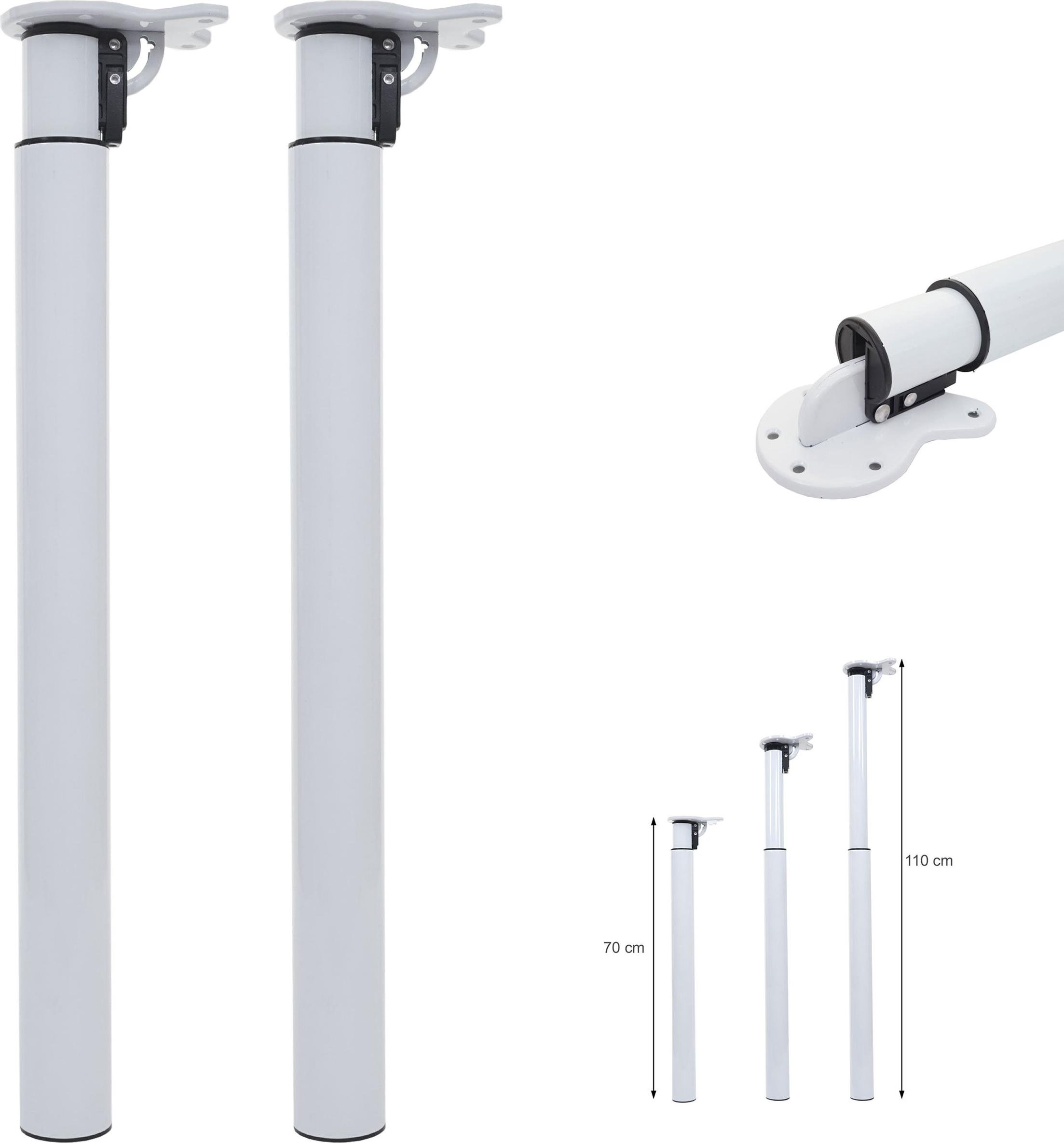 lot de 2 pieds de table HWC-H35 pour bureau pied de table rabattable mécanisme rotatif hauteur réglable 70-110cm ~ blanc