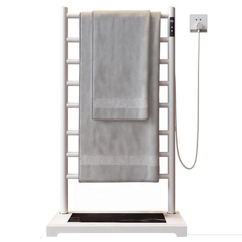 SAYEYBU SèChe Serviettes éLectrique sur Pied avec Socle Rangement, TempéRature RéGlable de 45 °C à 70 °C, Radiateur SèChe Serviettes éLectrique avec éCran LCD pour Salle Bain,Blanc