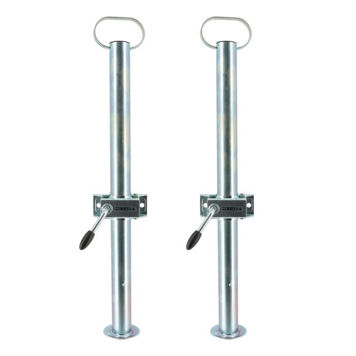 Béquilles de support pour remorque x2 + brides de fixation x2 - Hauteur 700mm - Dia 48mm - Acier galvanisé - Pied stabilisation