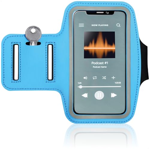COM-FOUR® Brassard de Sport - Poche de Bras pour Le Smartphone - Poche MP3 et téléphone Portable pour Le Haut du Bras - idéal pour la Course à Pied, Le Jogging et Le Sport (1 pièce - Bleu)