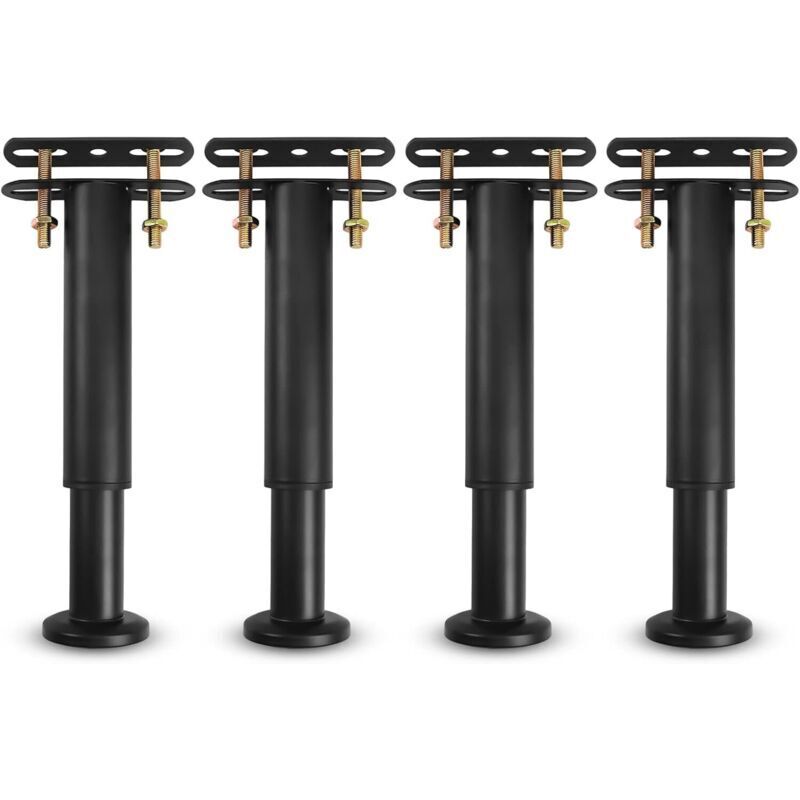 VURAHOME - 4pcs Pied De Lit À Visser Metal Pieds Pour Sommier À Lattes Universel Pieds De Meubles Noir, Pieds De Sommier Sans Perçage, Reglable
