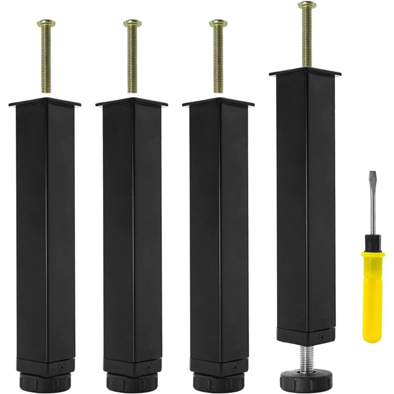 Pied De Lit Noir, Pieds Pour Sommier à Lattes Universel Hauteur: 30cm(+2cm) Reglable, 15-35cm En Option Matériel: Metal Carré: 3x3cm Pour Les Cadres